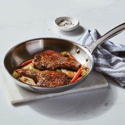 Honor your kitchen cabinets with cookware that will enhance your meal preparation for years to come using the Anolon Accolade 12″ Covered Deep Skillet. Offering the masterful cooking abilities of cast iron with the easy release and cleaning of nonstick, this hard-anodized aluminum skillet will quickly become your highest-ranking meal prep partner. Anolon’s Accolade Collection consists of forged cookware pieced with rim-to-rim stainless steel plates that lend to precise heat control, balanced weight, and unprecedented durability. The triple-layer nonstick adonized surface is as hard as sapphire, ensuring years of nonstick cooking without fading in performance. The tightly fitting glass lid features a stainless steel rim for added durability as well as a stainless steel handle for easy uncovering. Safe for use with all cooking surfaces, as well as dishwasher-safe, the Anolon Accolade 12″ Covered Deep Skillet will join your kitchen ready to tackle whatever recipe you throw its way!