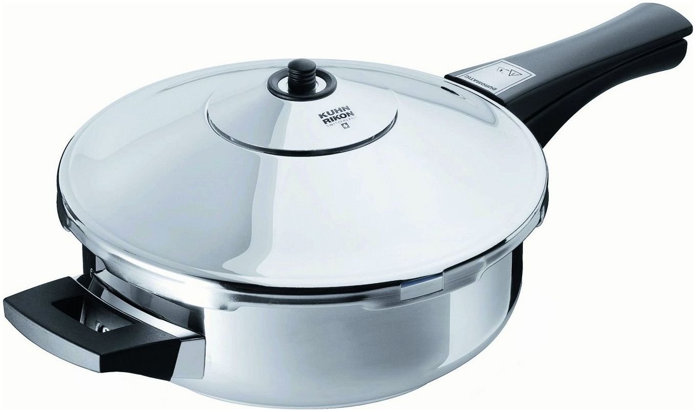Kuhn Rikon Pressure Frying Pan 2.6 Quart Braiser is the most popular Kuhn Rikon pressure frying pan. This pressure frying pan features a waffle textured cooking surface, which allows for fat free browning and sauteing. The Kuhn Rikon Pressure Frying Pan 2.6 Qt Braiser has a wide surface area for contacting heat. This means that this 2.6 qt braiser will come up to pressure faster then other pressure Frying Pans. The Kuhn Rikon Pressure Frying Pan 2.6 Qt Braiser is a amazing all purpose Frying Pan.