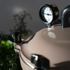 Easily preserve and store your own farm-raised and homegrown food with All American 1930’s No.921 Pressure Canner & Cooker in Barley! Made of heavy-cast aluminum with a proprietary, premium cookware-grade colored coating, this pressure canner offers the same time-trusted design as the original 921 pressure canner with a colorful new look. Pressure canning is the only safe way to preserve low-acid foods, such as meats, fish, beans, squash, and melons. By processing foods at higher heat with the use of specialized equipment, pressure canning eliminates the worry of harmful bacteria – allowing you to easily fill your pantry shelves with homemade, worry-free foods that will keep just as long as store-bought canned goods. All American 1930’s exclusive “metal-to-metal” sealing system keeps the canner safely locked without the use of a gasket, which prevents cracking, breaking, and the need to replace extra pieces. Positive action clamping locks align the cover to the base with wing nuts securing it in place – creating a steam-tight, secure seal while still letting you easily remove the cover. The pressure gauge allows for easy monitoring of the internal pressure, while the automatic overpressure release ensures the cooker does not retain too much pressure. Built to last generations and American-made since 1930, the All American No.921 Pressure Cooker & Canner is the choice addition to any budding homesteader or serious cook’s kitchen.