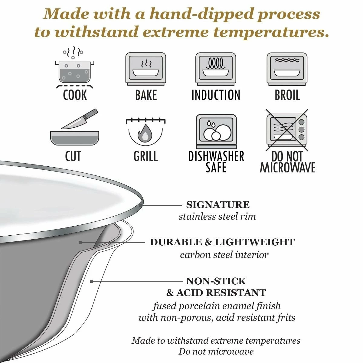 - Made with a hand-dipped process to withstand extreme temperatures