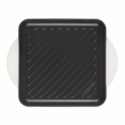 Le Creuset 9.5″ Square Signature Enameled Cast Iron Grill Pan (White) Features:
