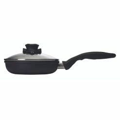 This Swiss Diamond Fry Pan is 11″ (28cm) in diameter and comes with a tempered glass lid. This Swiss Diamond Fry Pan is for larger jobs around the kitchen and has a cast aluminum helping handle. The cookware’s flat bottom provides even heat distribution and accommodates all ceramic, electric, and gas cooktops. The Fry Pan’s stay-cool ergonomic handle ensures a secure, comfortable grip, and the pan can be washed in a dishwasher for easy cleanup. The Swiss Diamond Fry Pan is oven-safe up to 500 degrees F.
