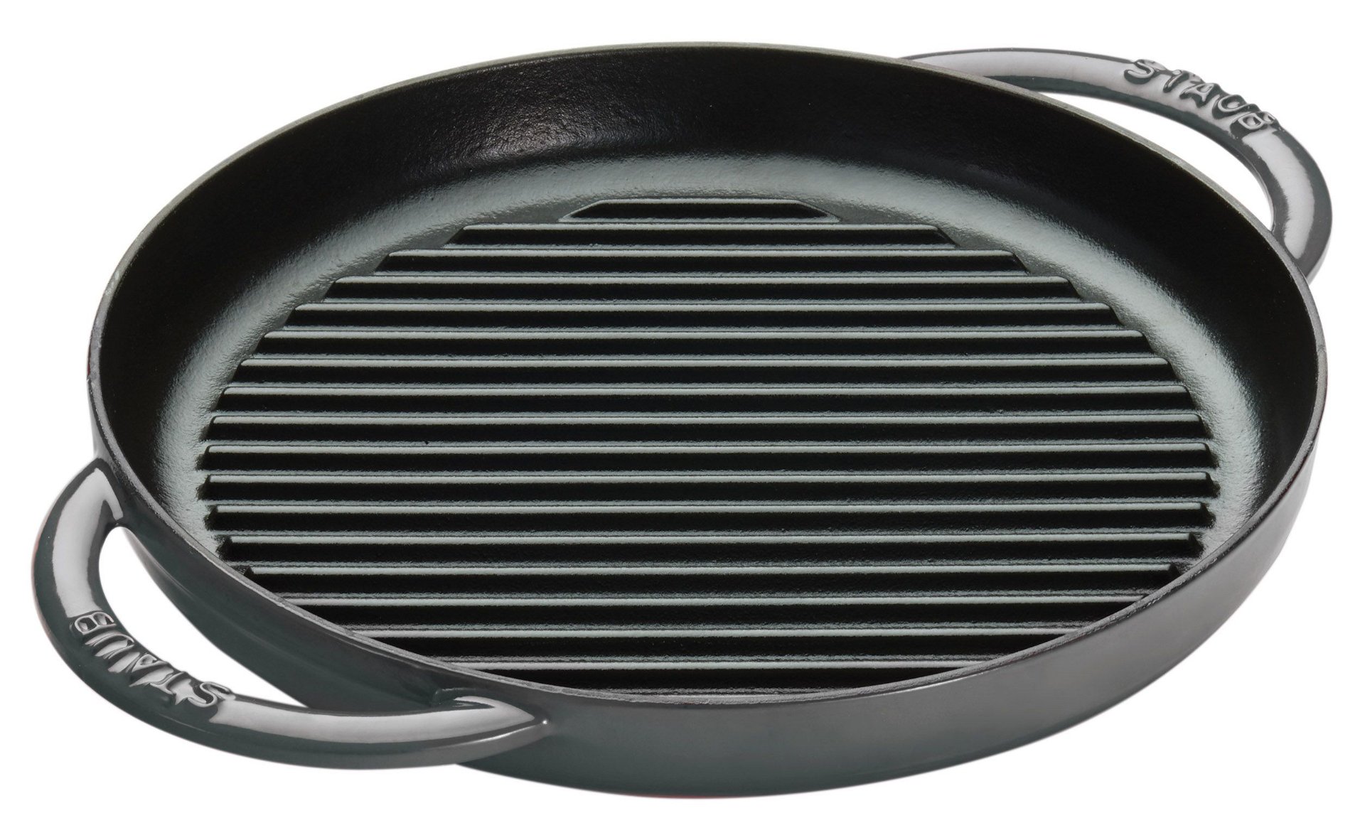 Share juicy, BBQ-grilled chicken tenders at family dinner with Staub’s 10 Inch Cast Iron Pure Grill Pan. This compact cast iron grill pan is made to cook your food slowly, and evenly so that every bite is just the way you want it. With this compact cast iron grill pan, you can enjoy all of the wonderful benefits of Staub cast iron cookware, without the same, bulky weight. Its interior black matte enamel coating is scratch-resistant and the handles on either side make it easy to use and maneuver. From stove to oven, this cast iron grill pan is compatible with all cook tops, including induction, and oven and broiler safe up to 500°F. With Staub’s 10” Cast Iron Pure Grill Pan, enjoy delicious home BBQ just the way you like it.
