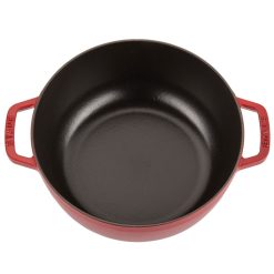 Search no further—the perfect pan is well within your reach! The Staub Perfect Frying Pan in Dark Blue is the quintessential frying pan for everyday use. This frying pan set includes a half-moon shaped stainless-steel rack. The wide angled shape lets you stir and toss your food without spilling. Great for making lobster bisque, beefy chili, braised chicken plus so much more. This remarkable frying pan is resistant to rust, chipping and cracking. The coating requires no additional seasoning like some other cast-iron pieces so you can get to cooking up a marvelous dinner for all of your family and watch those smiles on their face appear.