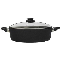 - Ergonomically designed handles will stay cool up to 260°C